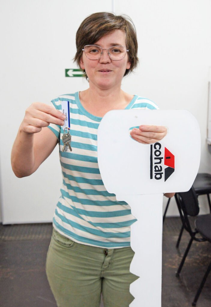 A moradora Alessandra Regina Alves de Oliveira também recebeu as chaves e fez questão de destacar o atendimento recebido: “Fui muito bem atendida e assistida por toda a equipe do Comercial da Cohab. Parabéns a cada um de vocês pelo trabalho!”.