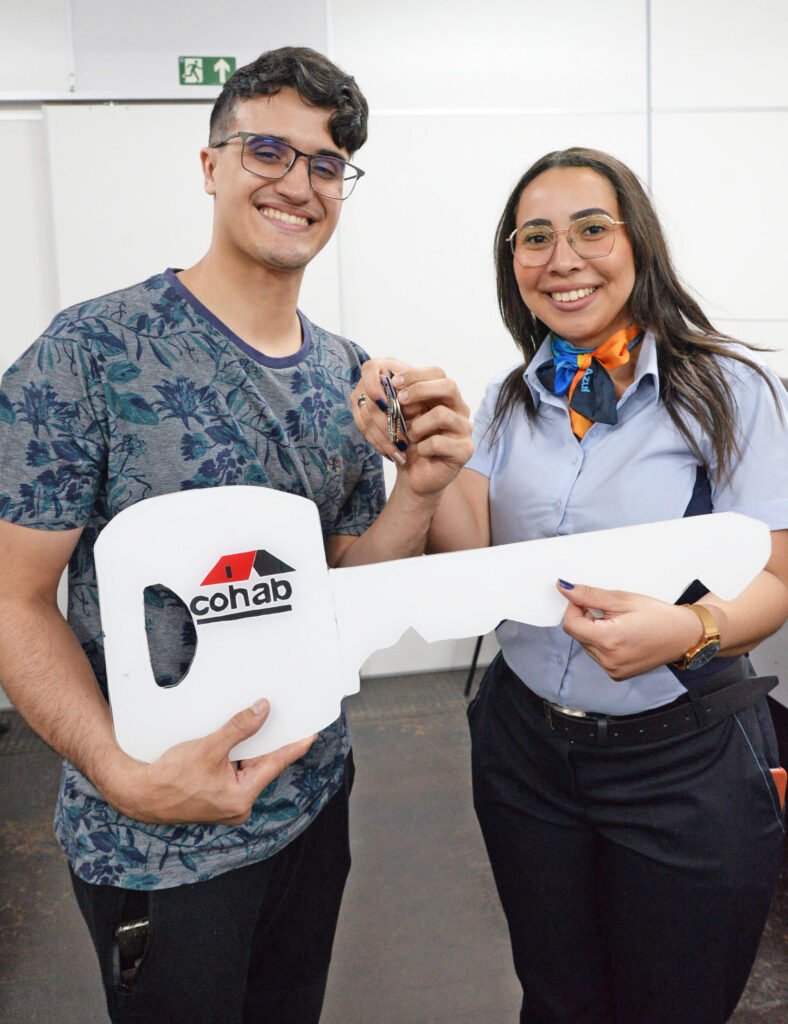 Outro casal que marcou a ocasião foi o de João Pedro e Débora Silva. Juntos há 1 ano e 6 meses de namoro, mas com uma amizade de 10 anos, eles decidiram consolidar essa nova fase da vida em um lar próprio, agora garantido com a chave do apartamento nas mãos.