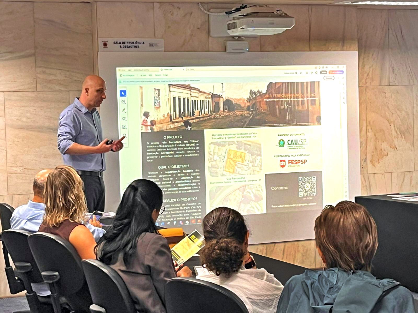 Ontem, terça-feira (14/04), o nosso Coordenador de Projetos de Reurb, Rodrigo David, foi convidado pelo CAU-SP para apresentar um caso de sucesso durante uma oficina técnica no Paço Municipal.